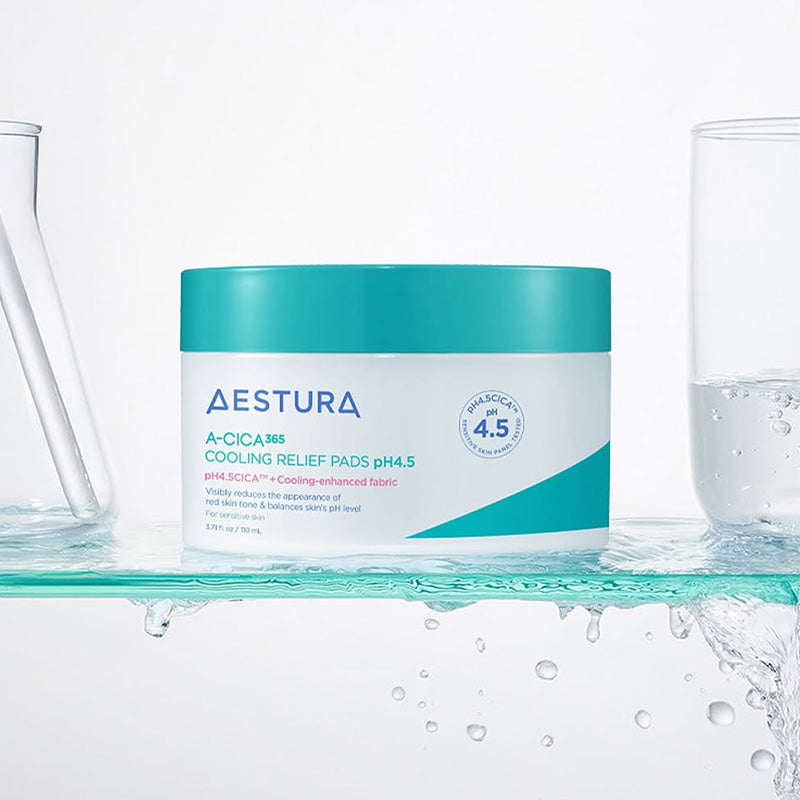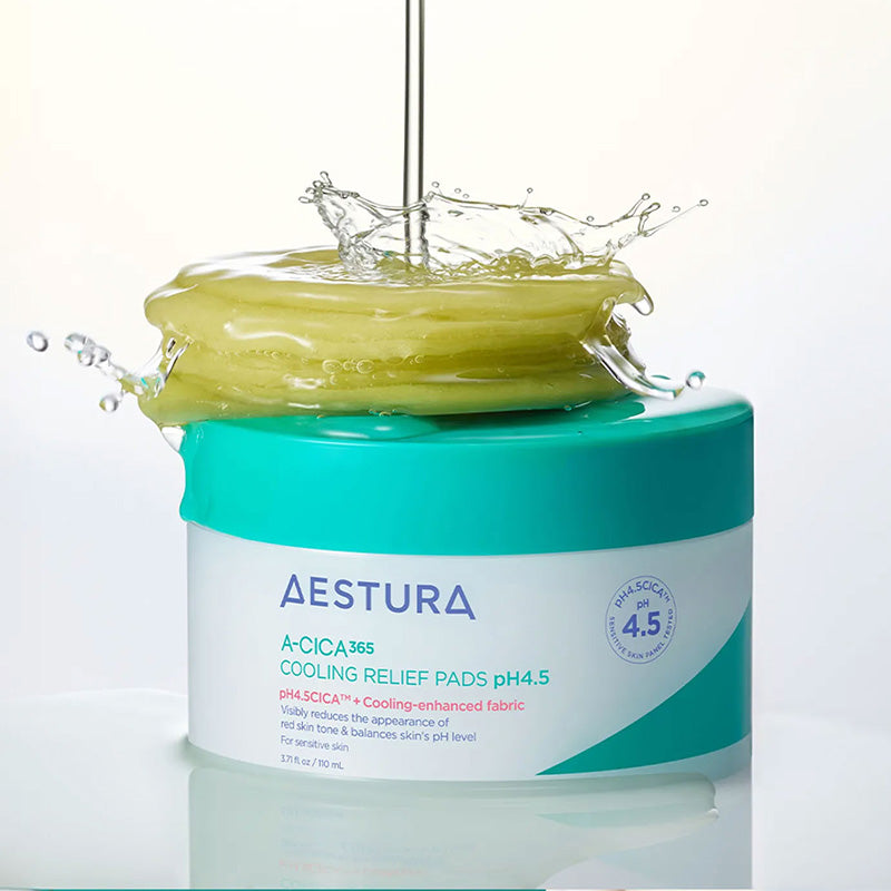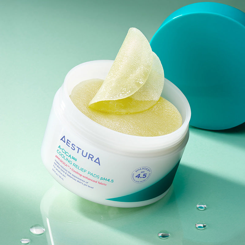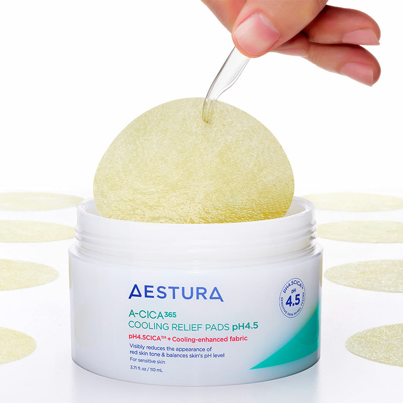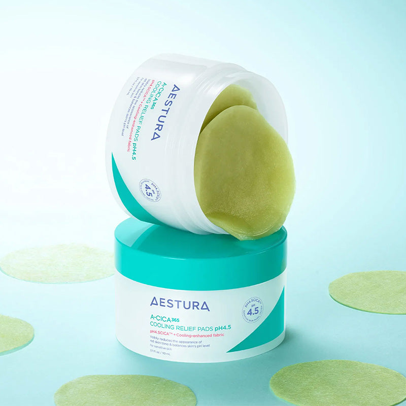 The AESTURA A-Cica 365 Cooling Relief Pads pH4.5 are pre-soaked calming toner pads designed to instantly soothe irritation, reduce redness, and rebalance sensitive or acne-prone skin. Formulated at a skin-friendly pH 4.5, these pads help maintain the skin’s natural protective barrier while delivering refreshing hydration. Powered by the A-Cica Complex and cooling ingredients, they provide immediate relief to overheated, stressed, or post-breakout skin.