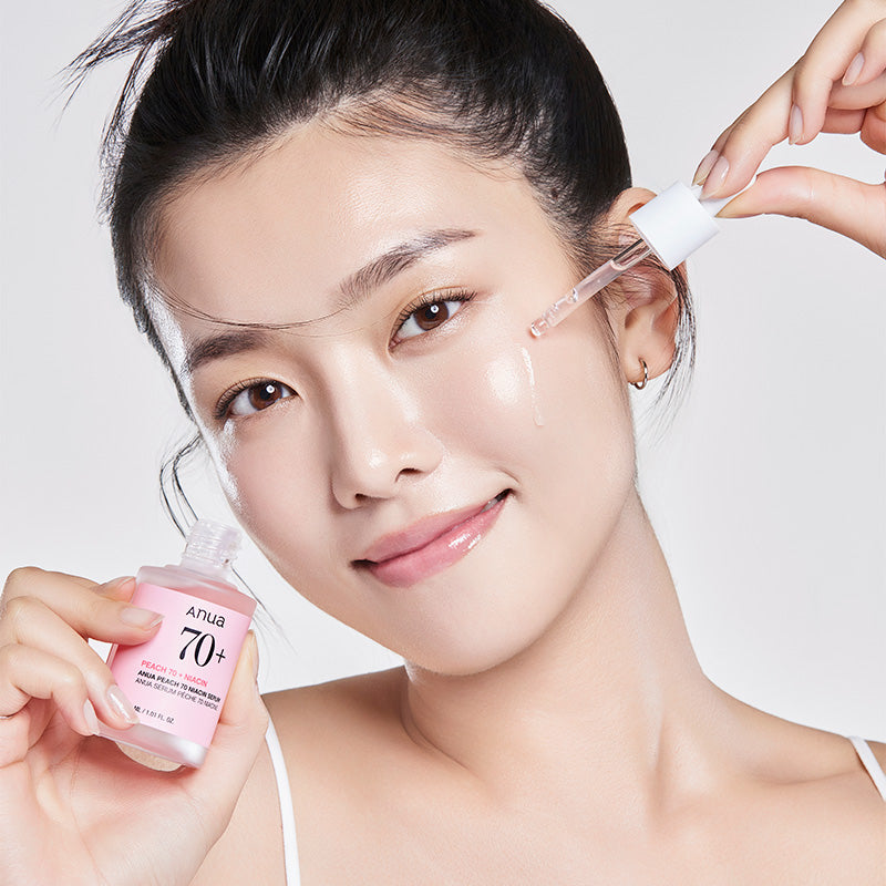 O Sérum Anua Peach 70% Niacin é um elixir nutritivo que deixará a sua tez tão suave e doce como um pêssego maduro. Com uma mistura notável de 70% de Extrato de Pêssego e 5% de Niacinamida, este sérum faz maravilhas para conseguir um tom de pele equilibrado e uniforme. A fórmula potente não só clarifica e fecha os poros, como também remove eficazmente as células mortas da pele, revitalizando a pele cansada com o Complexo de Iogurte de Pêssego, com Extrato de Flor de Pêssego e Salicilato de Betaína.