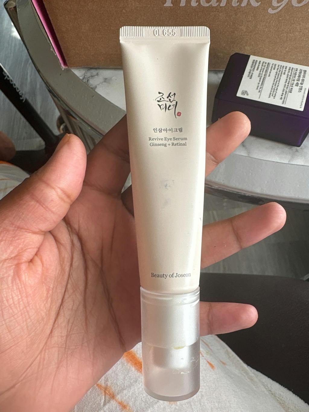 O Beauty of Joseon Revive Eye Serum: Ginseng + Retinal é um sérum antirrugas para a área dos olhos. Enriquecido com ginseng e retinal, o sérum firma, suaviza e revitaliza a pele ao redor dos olhos, deixando-a flexível e brilhante. O extrato de raiz de ginseng, um ingrediente herbal bem conhecido, oferece benefícios antioxidantes, aumenta a hidratação e ajuda a melhorar visivelmente os sinais de envelhecimento da pele.
