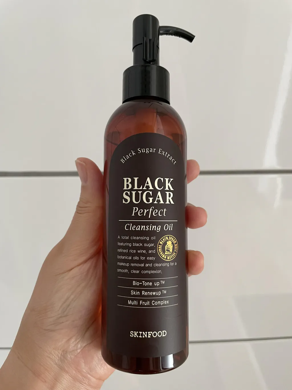O Skinfood Black Sugar Perfect Cleansing Oil é rico em açúcar preto mineral, vinho de arroz refinado e botânicos para remover suavemente a maquilhagem e as impurezas para uma tez suave e nutrida. O açúcar preto actua como um ingrediente esfoliante e hidratante, enriquecido com vitaminas e minerais para hidratar e nutrir a pele.