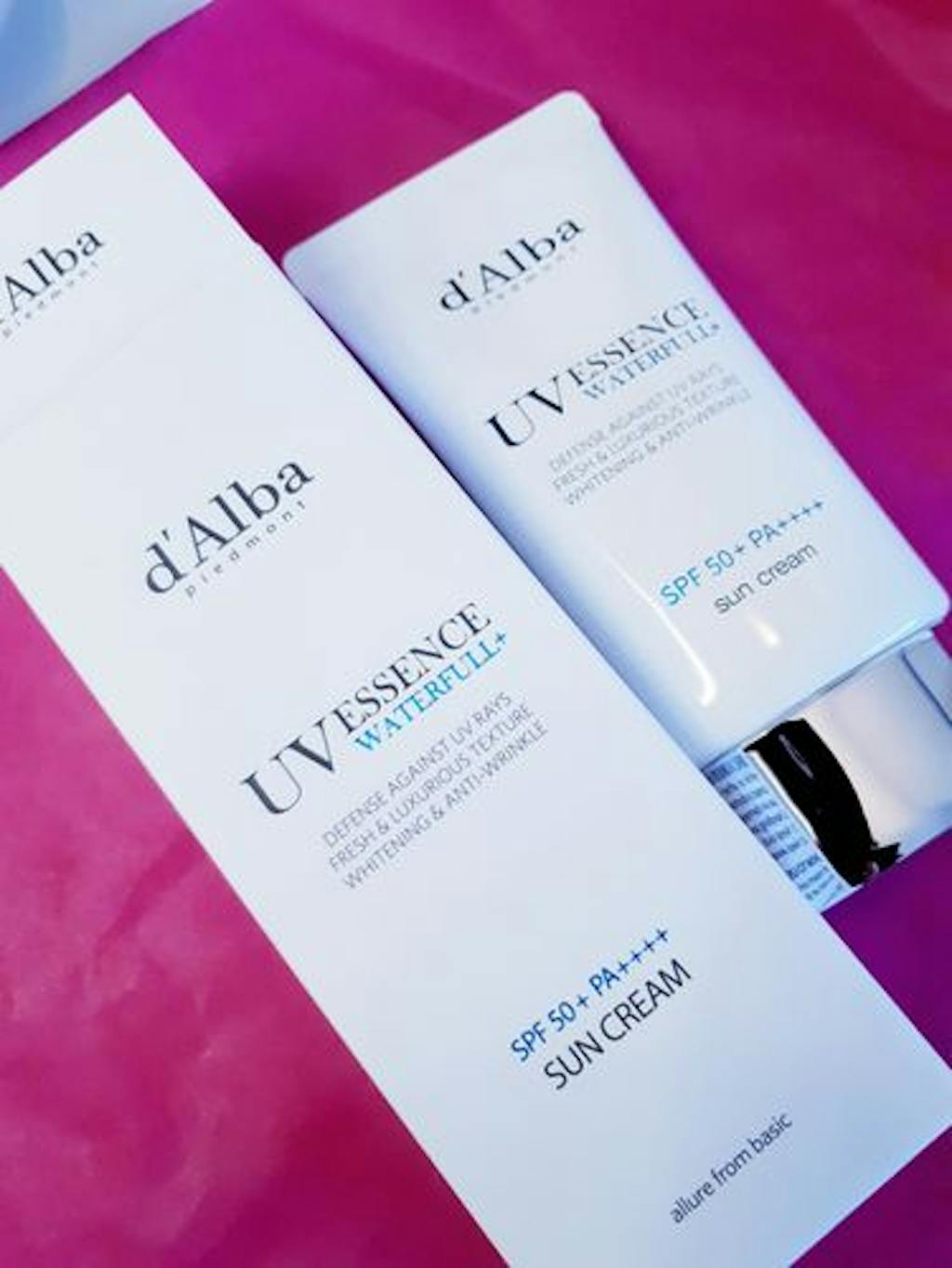 O Creme Solar D'Alba Waterfull Essence é um protetor solar leve e aquoso que é facilmente absorvido sem deixar uma sensação gordurosa e pegajosa. Este creme solar é triplamente funcional: proteção solar, luminosidade, antirrugas. A trufa branca e o extrato de vinho fornecem nutrição à pele cansada pelos raios ultravioleta, enquanto ingredientes como a Niancinamida e o extrato de Centella Asiatica hidratam e acalmam a pele. Este protetor solar refrescante possui um poderoso SPF50 de largo espetro, juntamente com trufa branca e extractos de vinho para fornecer nutrição e hidratação à pele cansada e danificada.