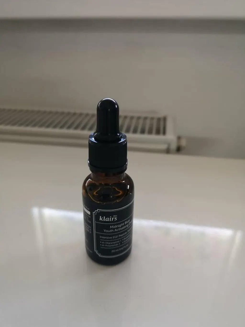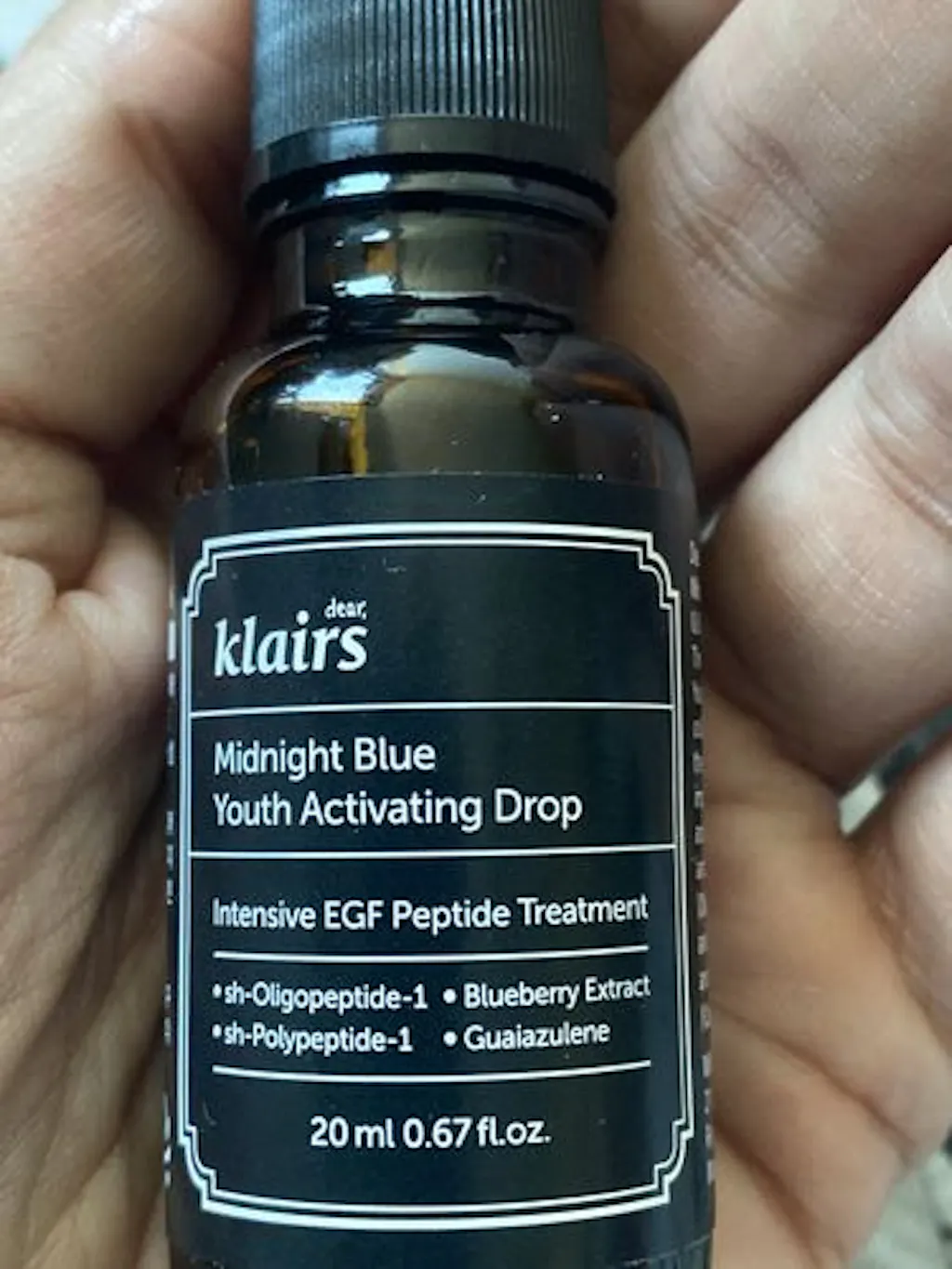 A Gota Activadora da Juventude Dear Klairs Midnight Blue é um sérum de noite anti-envelhecimento que ajuda a reparar a pele danificada e a melhorar o aspeto das rídulas e rugas. Os principais ingredientes EGF e bFGF são péptidos de alta qualidade conhecidos pelos seus efeitos no retardamento do envelhecimento, acelerando a regeneração da pele, reforçando a barreira cutânea, ajudando a síntese de colagénio e tornando a pele mais firme e mais elástica. A presença de guaiazuleno também torna este sérum altamente eficaz para acalmar e reparar a pele que foi irritada ou sensibilizada pelos raios ultravioleta, acne e outros factores.