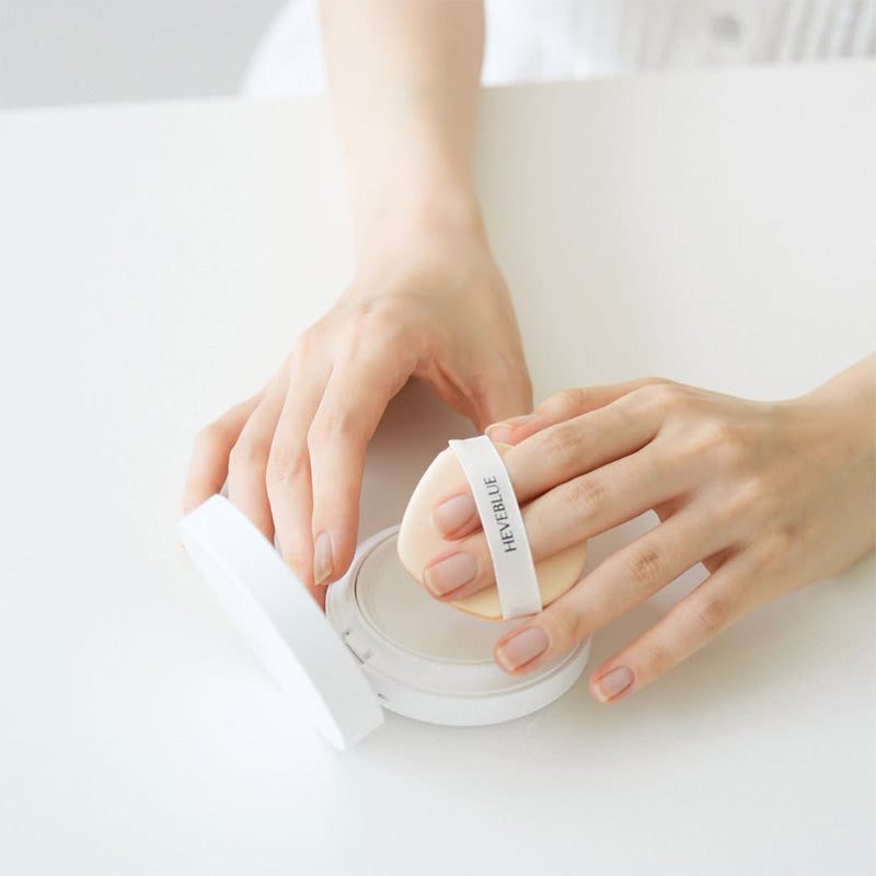 HEVEBLUE Penta Berry Panthenol Repair Glow Foundation Cushion é uma base coreana em almofada que combina perfeitamente maquilhagem e cuidados com a pele. Formulada com o complexo Pentaberry exclusivo da Heveblue, contém extratos de arando, morango, framboesa e dois tipos de mirtilo para hidratar e acalmar a pele. A base oferece uma cobertura duradoura e anti-vermelhidão sem empelotar, proporcionando um acabamento natural e hidratado por até 24 horas.