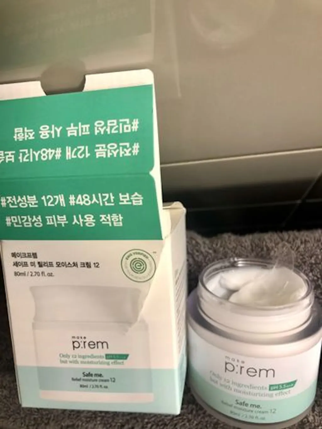 O creme Make P:rem Safe Me Relief Moisture é um creme hidratante de rápida absorção que contém apenas 12 ingredientes eficazes, 93% dos quais são derivados de plantas. A fórmula contém extrato de framboesa, esqualeno e glicerina para reabastecer a pele seca e com prurido e evitar a perda de humidade. O hidratante calmante da Make Prem tem um pH ligeiramente ácido de 5,5 e é isento de fragrâncias e cores artificiais, produtos de origem animal, parabenos, sulfatos, óleo mineral e silicone.