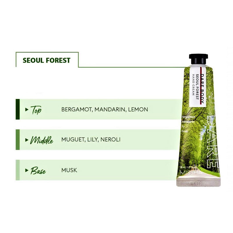 Available in a variety of signature scents, from fresh florals to cozy, clean notes, this hand cream turns everyday hydration into a sensory treat. The MISSHA Dare Body Hand Cream is the perfect pocket-sized essential for soft, cared-for hands.