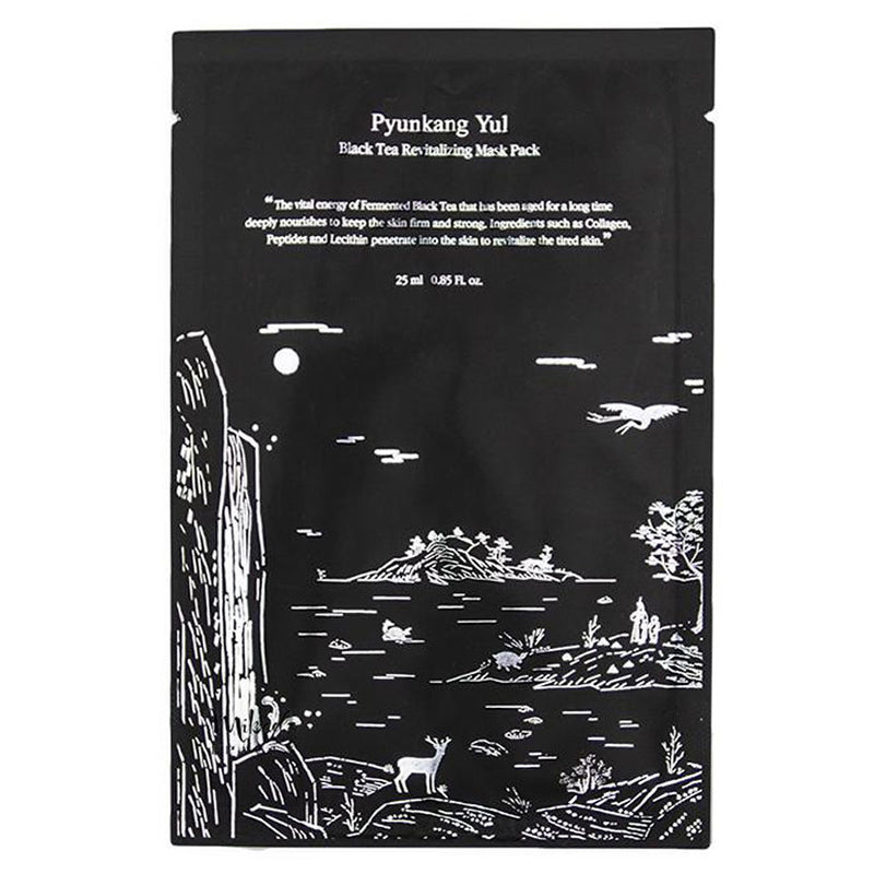 O Pyunkang Yul Black Tea Revitalizing Mask Pack é uma máscara em folha que restaura a pele e a nutre. Com um extrato nutritivo de chá preto fermentado, bem como uma mistura de ingredientes à base de ervas coreanas e péptidos para reduzir o aparecimento de rugas, esta máscara em folha restaura a elasticidade e promove a luminosidade.