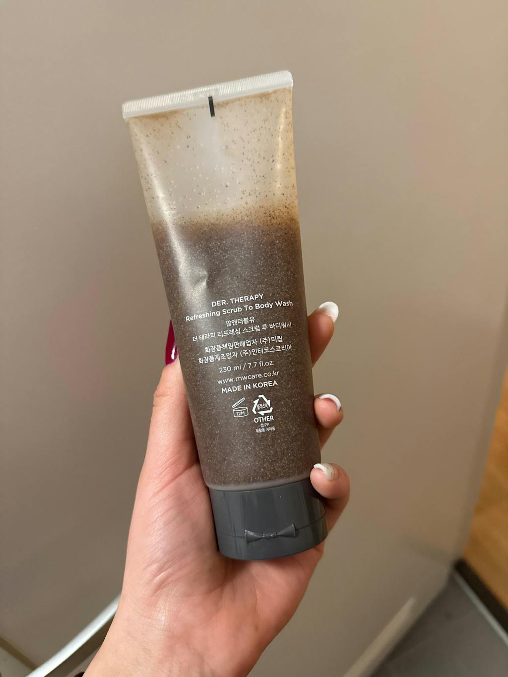 O RNW DER. THERAPY Refreshing Scrub To Body Wash é um gel de lavagem corporal 3 em 1 que pode ser utilizado para limpar, esfregar e massajar o corpo. Contém ingredientes esfoliantes de origem natural, como o Pó de Casca de Noz, para remover suavemente as impurezas e as células mortas da pele. Formulado com o Complexo de Energia dos Grãos para suavizar e hidratar a pele e obter uma textura mais suave.