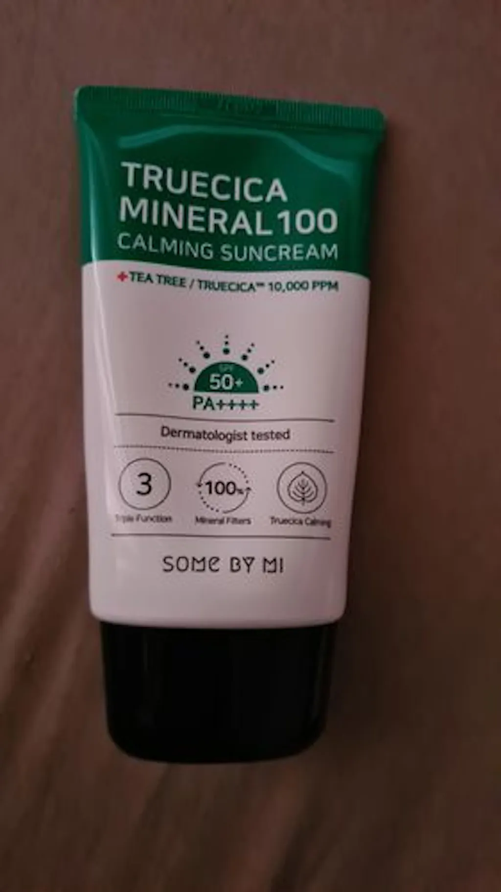 O protetor solar Some By Mi Truecica Mineral Calming Tone-Up é um protetor solar físico que reflecte os raios UV nocivos sem se espalhar na pele. Composto por 85% de essência hidratante, este protetor solar oferece um amplo espetro de proteção SPF50+ PA++++ enquanto acalma e reforça a barreira da pele com 10.000ppm de Truecica patenteada. O creme também ajuda a reduzir as rugas e a iluminar a tez.